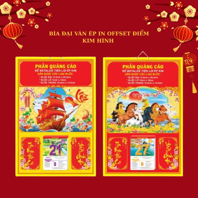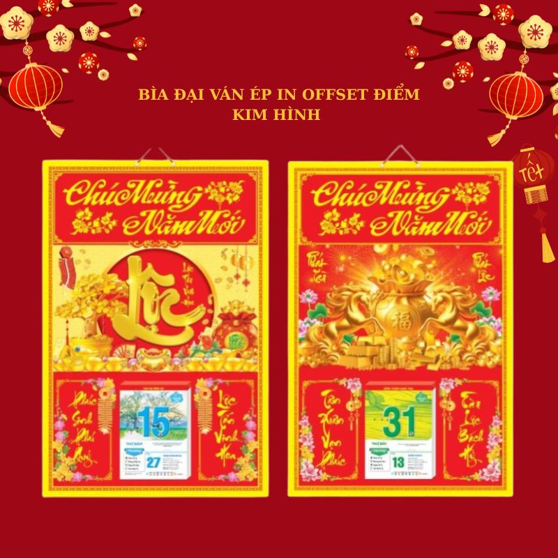 Bìa Đại Ván In Offset Điểm Kim Hình LTPPR22 là dòng sản phẩm lịch treo tường kết hợp giữa truyền thống và công nghệ in ấn hiện đại. Sản phẩm nổi bật với cấu tạo Bìa Đại Ván Ép (MDF hoặc Carton cứng cao cấp), mang lại độ chắc chắn và bền bỉ vượt trội. Hình ảnh trên bìa được in bằng công nghệ Offset với độ sắc nét cao, sau đó được Điểm Kim (Ép Kim/Ép Nhũ) lên các chi tiết quan trọng (như chữ, hoa văn) để tạo hiệu ứng lấp lánh, sang trọng. Thiết kế thường mang chủ đề phong cảnh, hoa lá hoặc phúc lộc.