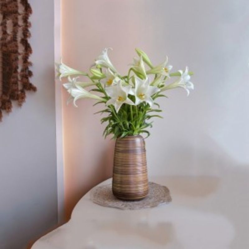 Quà Tặng Cá Tính và Sang Trọng: Bình hoa kết hợp chất liệu là món quà tặngtân gia hoặc khai trương rất độc đáo và có giá trị trưng bày, thể hiện sự chăm chút và gu thẩm mỹ của người tặng.