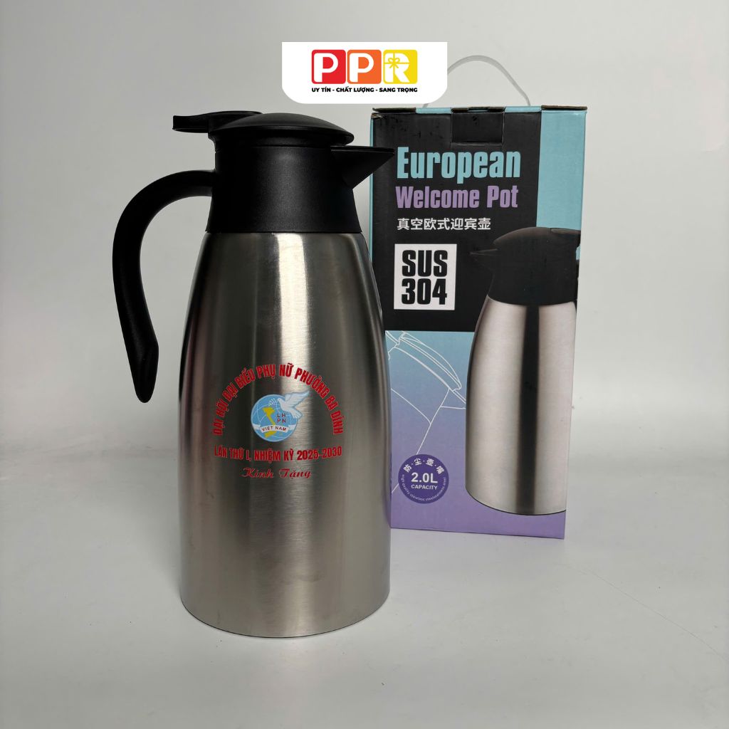 Bình giữ nhiệt inox 304 dung tích 2000ml in/khắc logo theo yêu cầu tại PPR Gift không chỉ là vật dụng hữu ích hằng ngày mà còn là giải pháp quảng bá thương hiệu bền vững – chuyên nghiệp – đẳng cấp.
