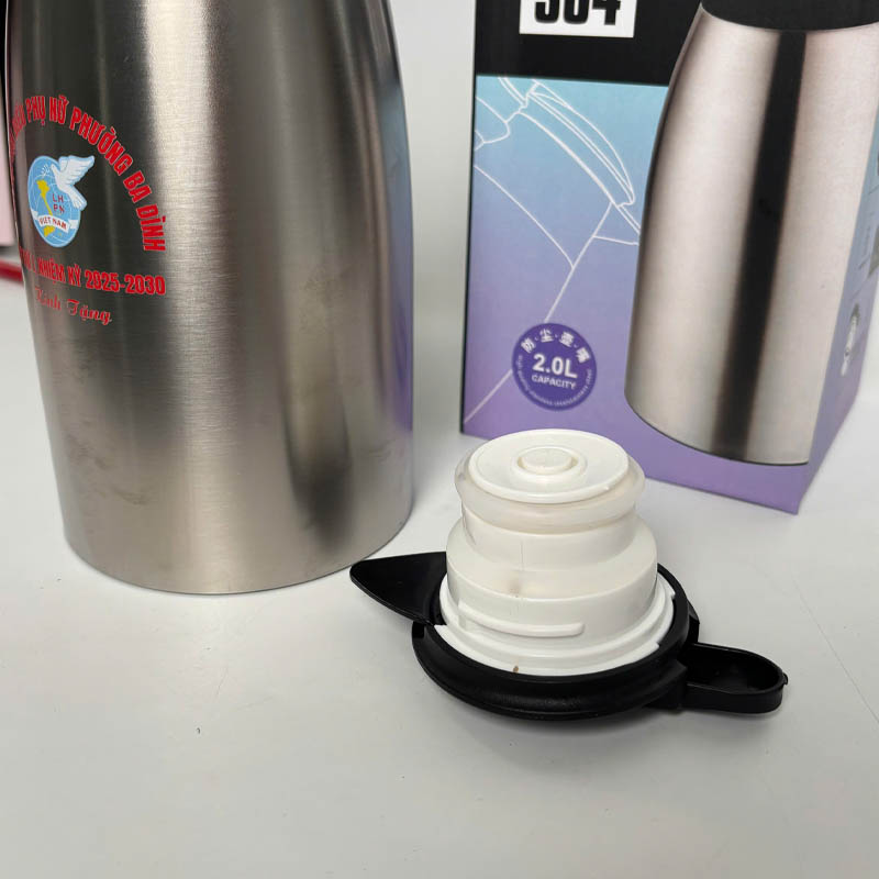- In Logo Doanh Nghiệp, Tập Thể Rõ Nét: Với bề mặt rộng, logo doanh nghiệp hoặc thông điệp tập thể được in logo rõ ràng, dễ nhận biết. Việc bình giữ nhiệt 2000ml in logo là cách hiệu quả nhất để quảng bá thương hiệu tại nơi làm việc và trong cộng đồng.