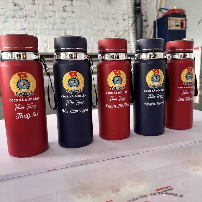 Có. Công nghệ khắc laser cho phép cá nhân hóa từng chiếc bình. Chúng tôi có thể khắc logo doanh nghiệp ở vị trí nổi bật và khắc tên riêng, chức danh hoặc lời chúc ngắn gọn của từng người nhận ở vị trí khác, nâng cao giá trị độc quyền của món quà tặng khuyến mại này.