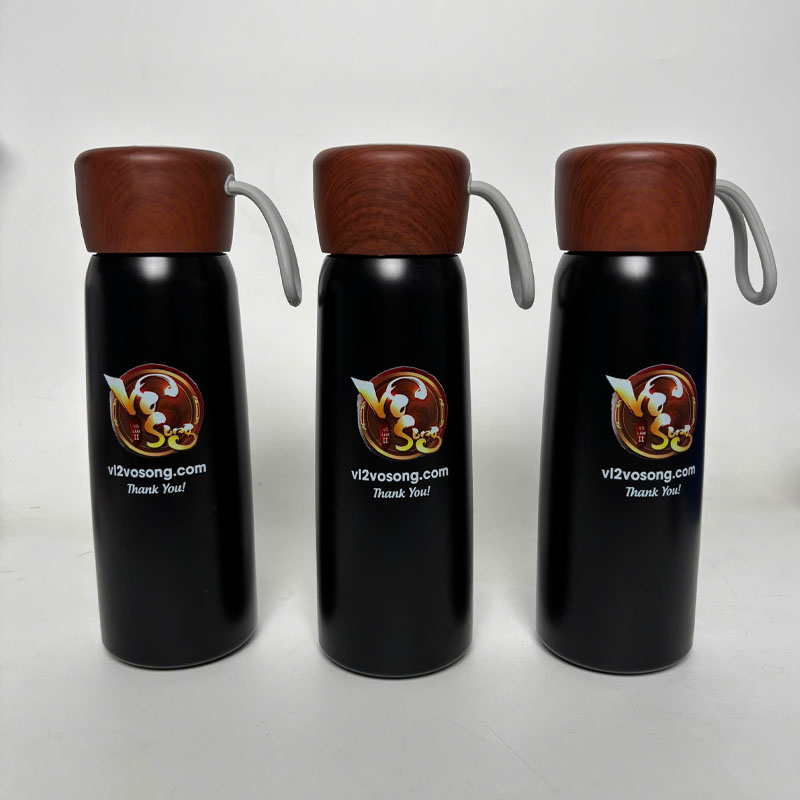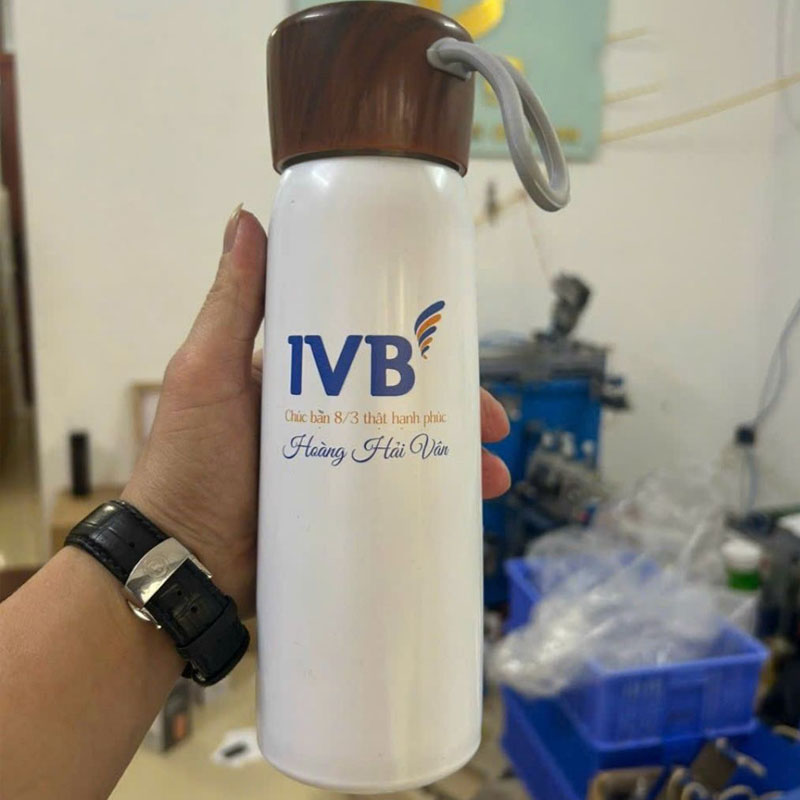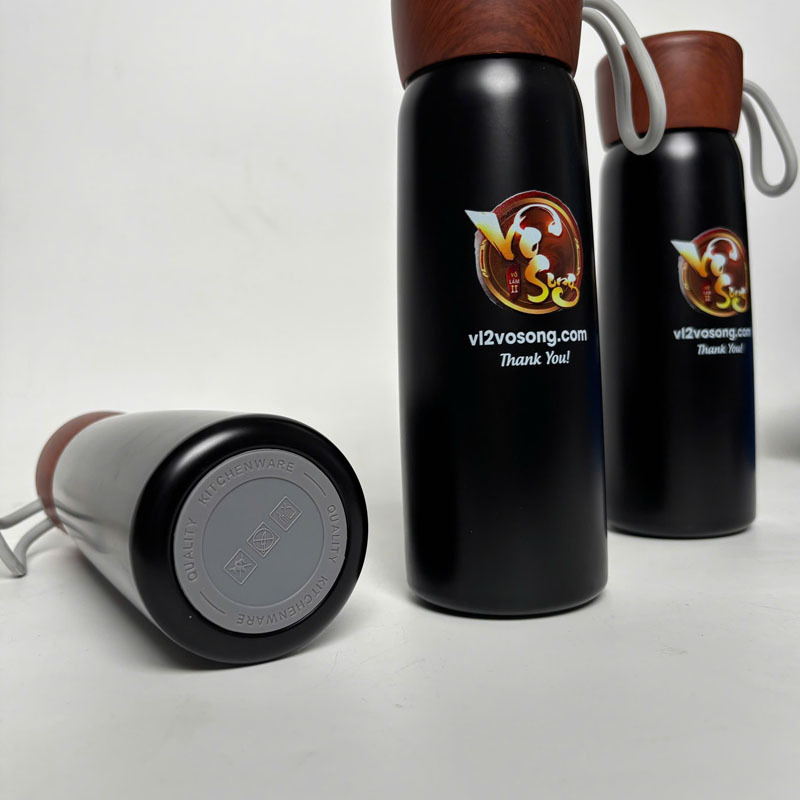 - In Theo Yêu Cầu Linh Hoạt: Bề mặt thân bình có thể in theo yêu cầu bằng công nghệ khắc laser logo (tạo hiệu ứng đơn sắc tinh tế) hoặc in UV đa sắc (tạo hình ảnh rực rỡ). Khả năng cá nhân hóa cao này là lợi thế lớn cho các chiến dịch quảng bá.