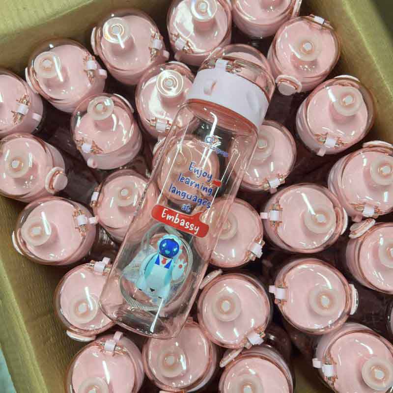 - Bình nhựa nắp bật in logo làm quà tặng khuyến mãi kèm sản phẩm.