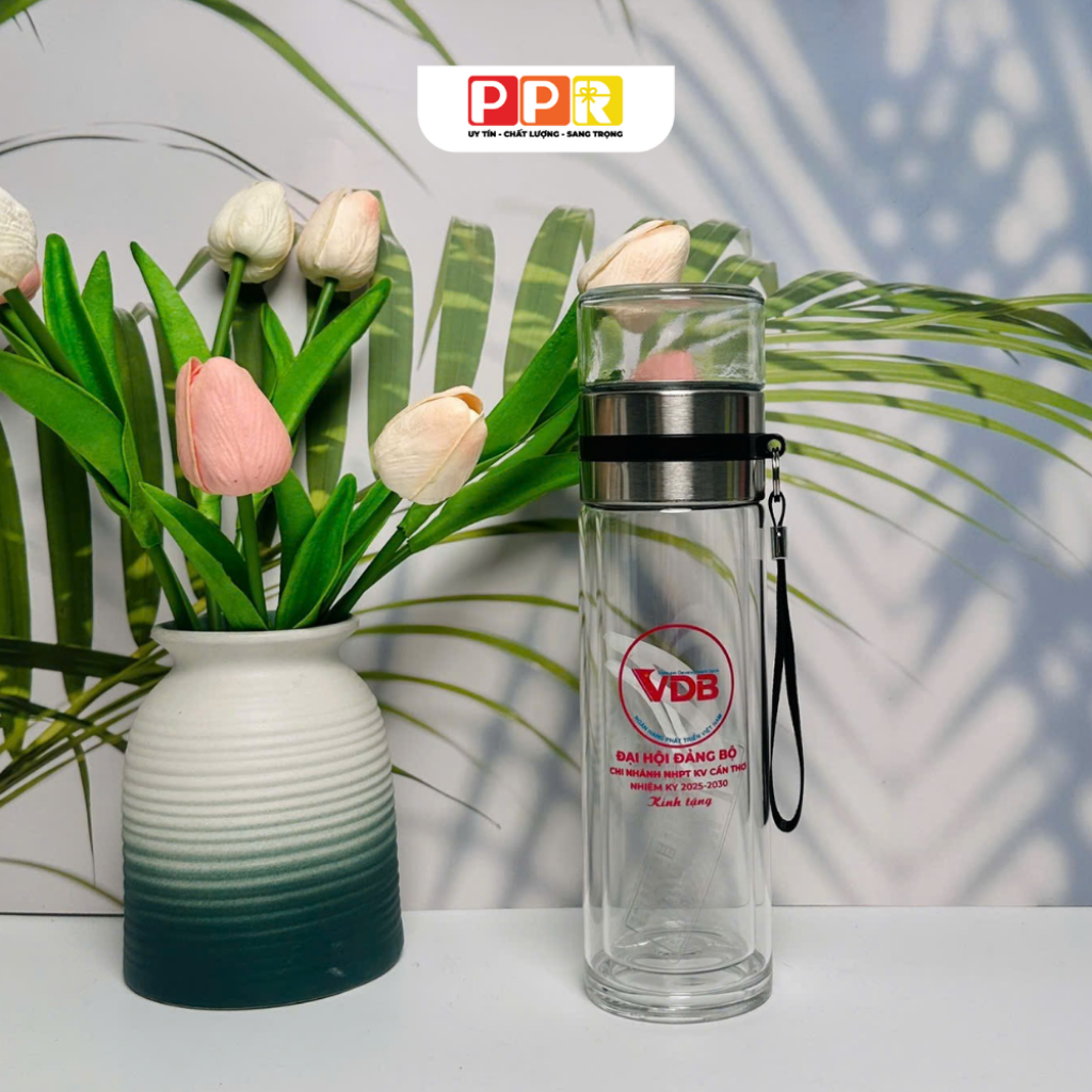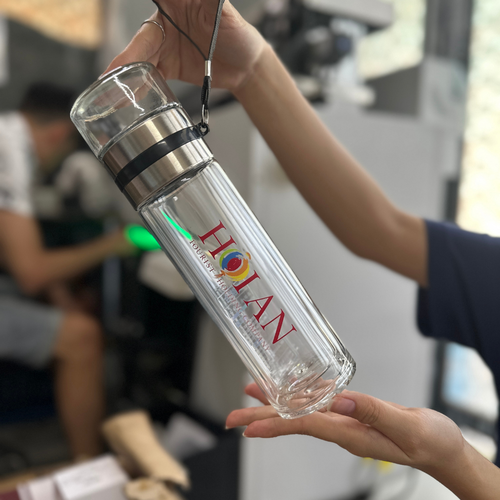 Trong các sự kiện, hội nghị, tri ân khách hàng hay làm quà tặng nội bộ, bình thủy tinh có khay lọc trà và quai xách tiện lợi in logo là lựa chọn hoàn hảo. Sản phẩm vừa sang trọng, vừa hữu dụng, đồng thời giúp doanh nghiệp quảng bá thương hiệu một cách tinh tế và bền vững.