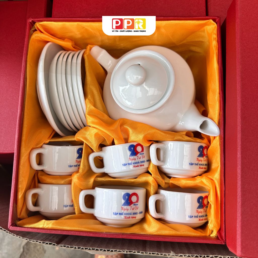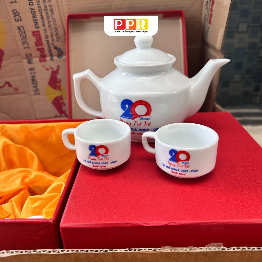 Bộ ấm chén in logo kỷ niệm 20 năm ra trường dáng HongKong ACPPR12