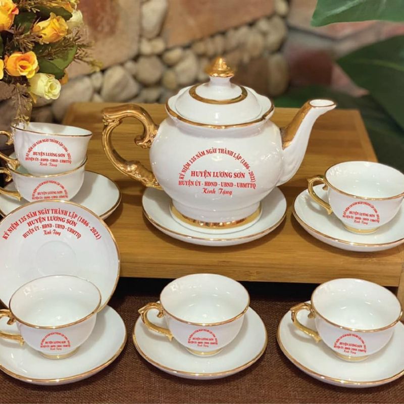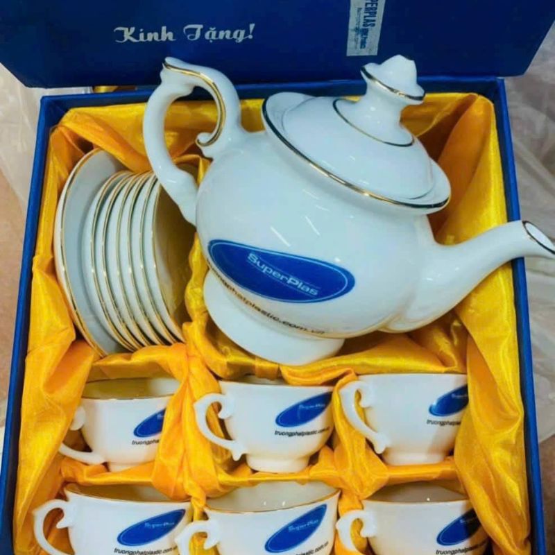 - In Logo Theo Yêu Cầu Nổi Bật: Khả năng bộ ấm chén men xanh ngọc in logo cho phép doanh nghiệp lựa chọn màu in (thường là vàng kim, bạch kim hoặc trắng) để tạo sự tương phản nổi bật và sang trọng trên nền men xanh ngọc quý phái.