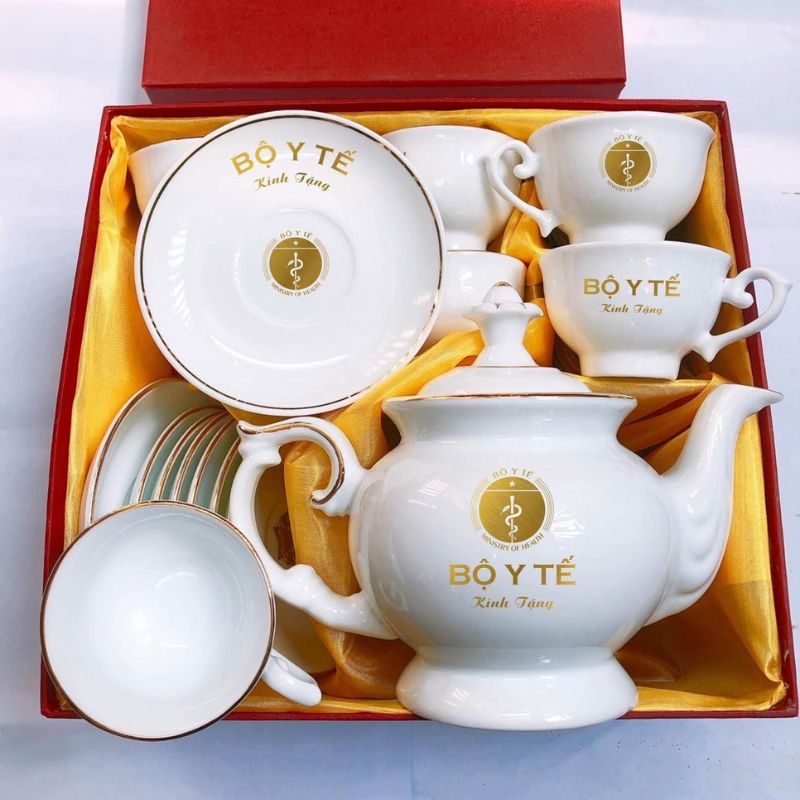 - Bộ ấm chén men xanh ngọc in logo làm quà tặng cho ngành nghề liên quan đến thẩm mỹ, trang sức, hoặc có nhận diện thương hiệu màu xanh/ngọc.