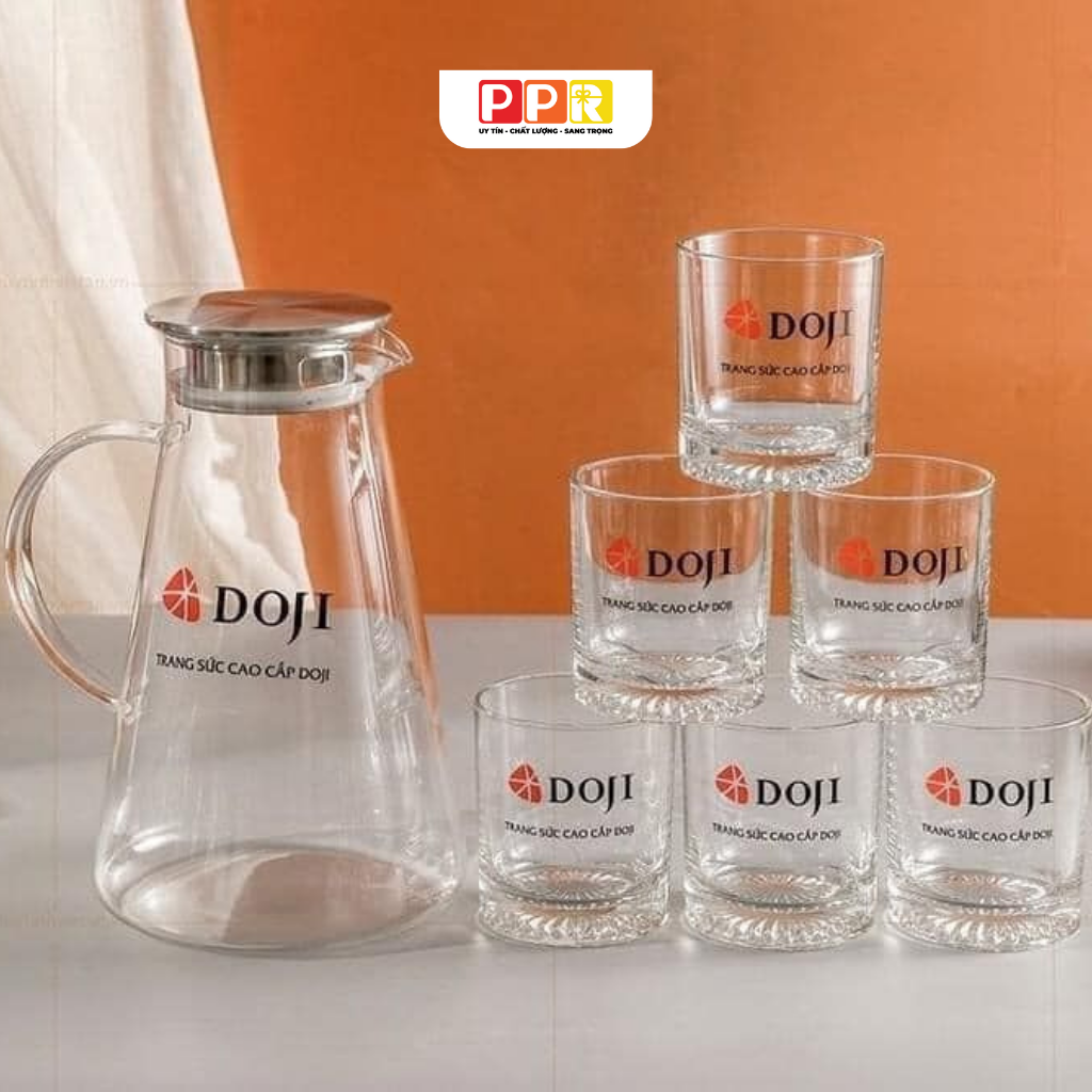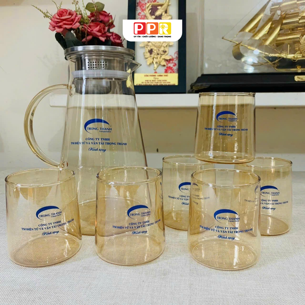 Bộ bình cốc thủy tinh in logo theo yêu cầu TTPPR03
