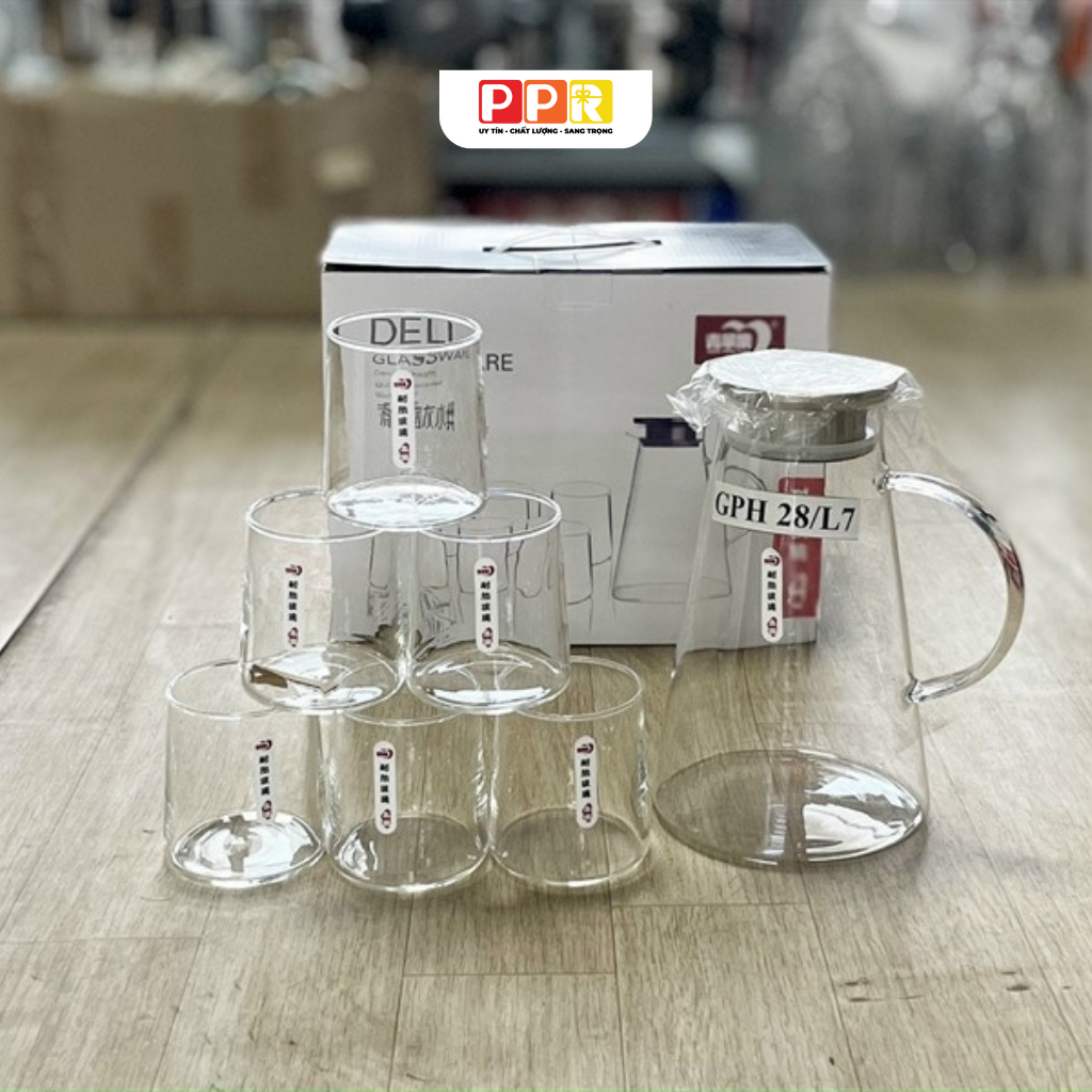 Thiết kế đồng bộ: gồm bình và cốc thủy tinh, phù hợp sử dụng trong gia đình, văn phòng, khách sạn, nhà hàng.