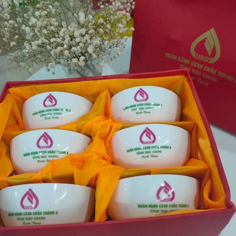 - Bộ Sáu Bát Sứ In Logo Theo Yêu Cầu làm quà tặng cho ngành hàng bất động sản, ngân hàng, bảo hiểm, dịch vụ gia đình.