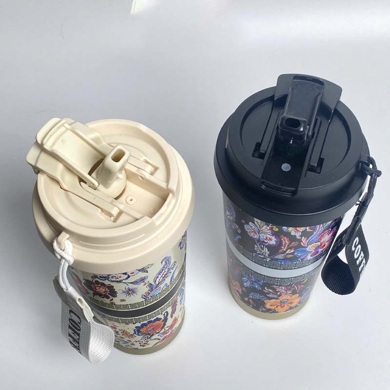 Cốc Giữ Nhiệt Họa Tiết In Logo Theo Yêu Cầu | CGNPPR12 – Thiết Kế Đa Năng 530ml, Có Quai Xách và Đầu Uống 2 Trong 1