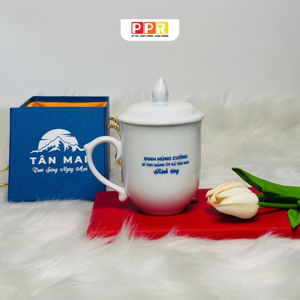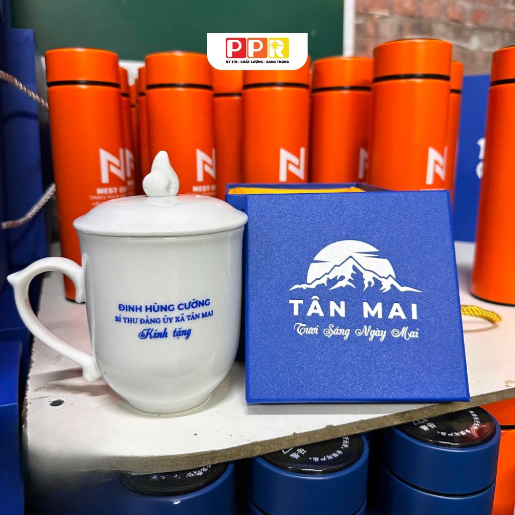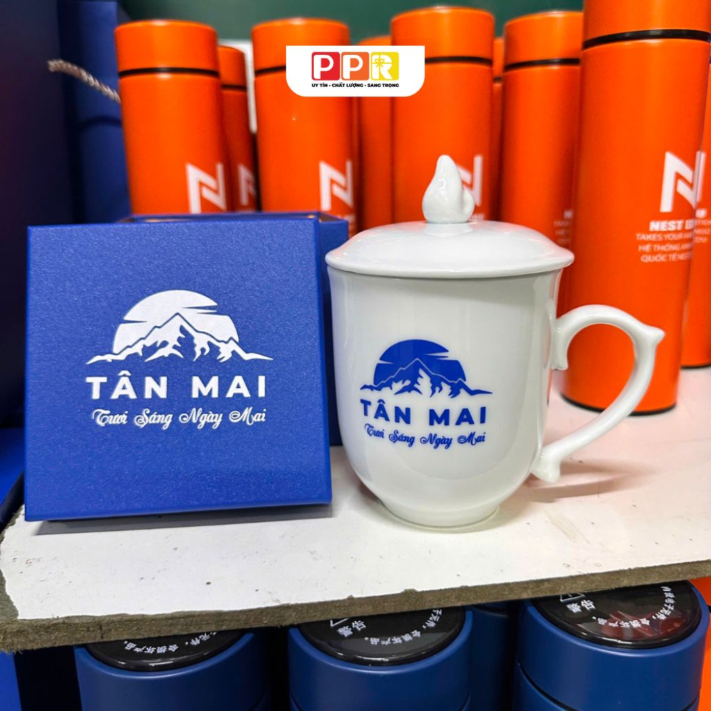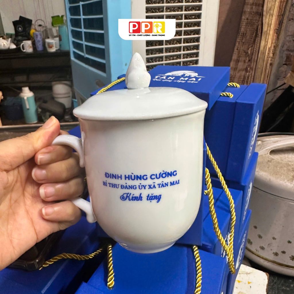 Với xưởng sản xuất trực tiếp và đội ngũ thiết kế giàu kinh nghiệm, PPR Gift cam kết mang đến những mẫu cốc sứ có nắp in logo theo yêu cầu kèm hộp xi lót lụa vàng chất lượng cao, in sắc nét và giao hàng đúng hẹn.