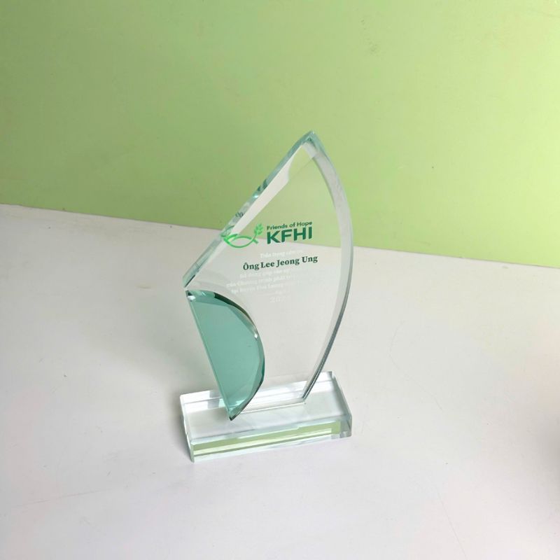 3. Khắc Laser Vĩnh Cửu: Khả năng khắc laser 3D vào sâu bên trong khối pha lê hoặc khắc trên đế giúp logo và thông điệp vinh danh được lưu giữ một cách sắc nét, trường tồn với thời gian.