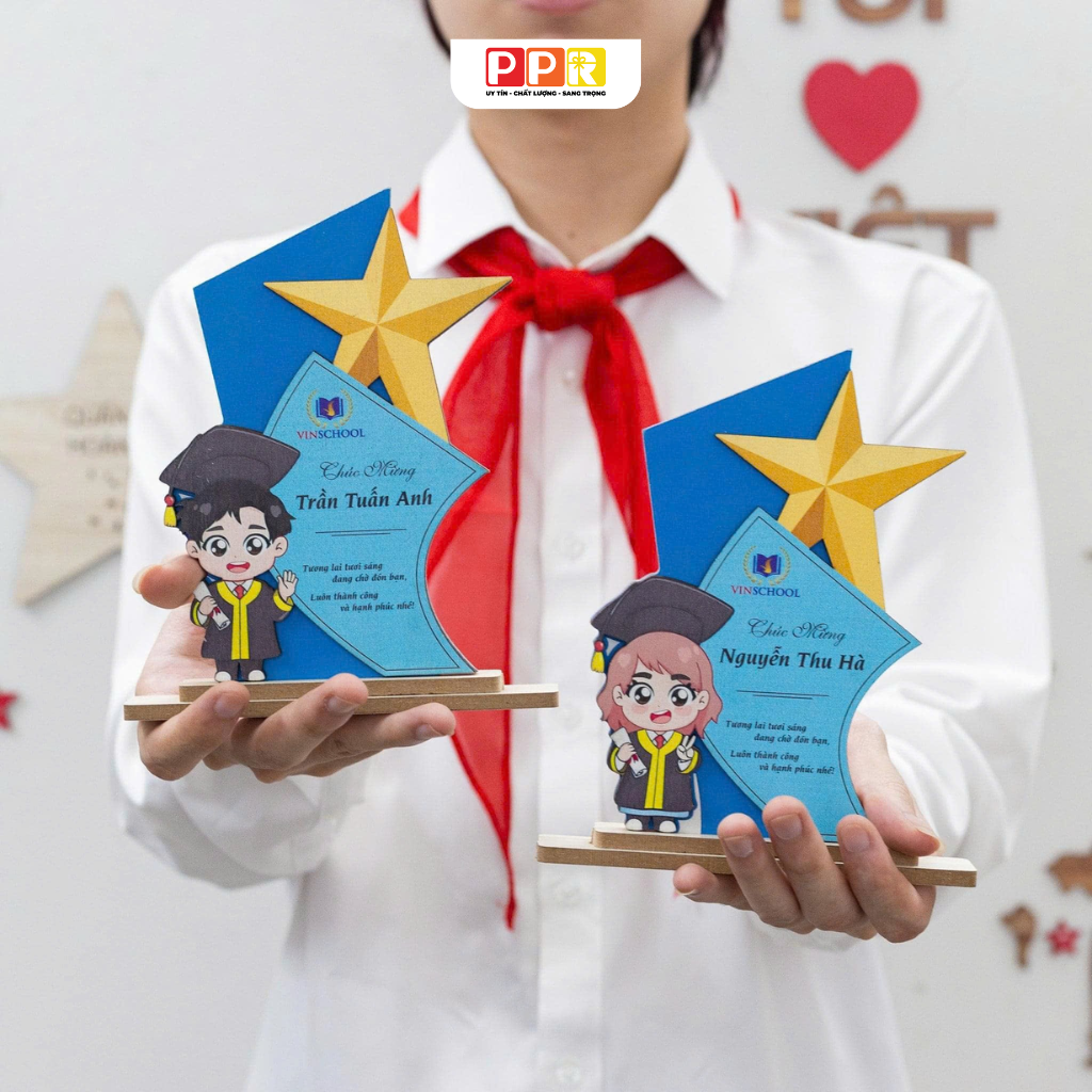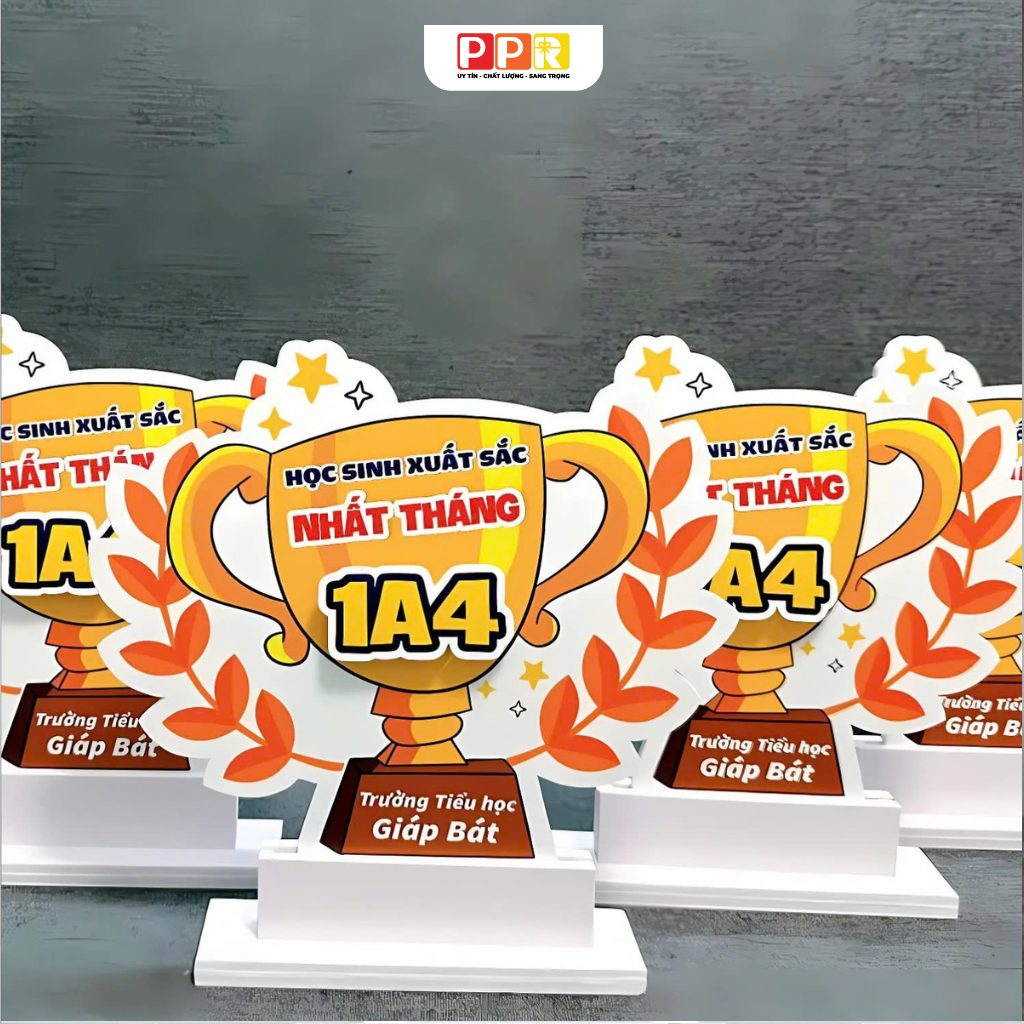 Cúp vinh danh học sinh từ PPR là món quà ý nghĩa, tôn vinh những nỗ lực học tập và thành tích xuất sắc của các em. Được thiết kế tinh tế, sản phẩm không chỉ là phần thưởng mà còn là nguồn động lực to lớn, khuyến khích các em tiếp tục phấn đấu trên con đường học vấn.