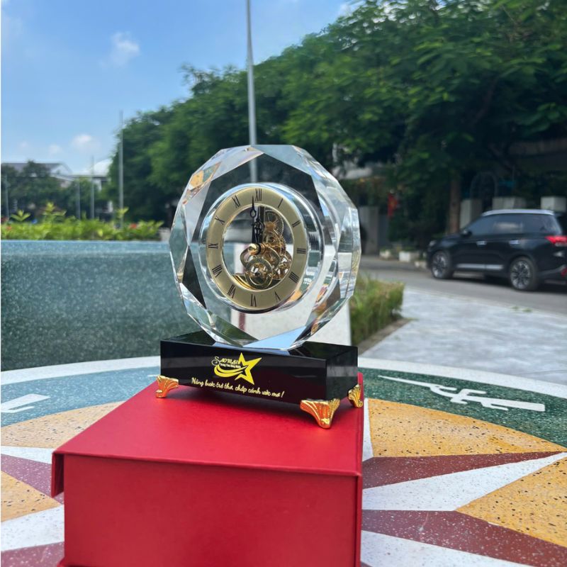 - Khẳng Định Đẳng Cấp Chuyên Nghiệp: Chất liệu Pha Lê mang lại vẻ ngoài lịch sự và cao cấp. Logo được khắc laser hoặc in trên pha lê/đế gỗ một cách tinh tế, giúp khẳng định hình ảnh chuyên nghiệp của doanh nghiệp.