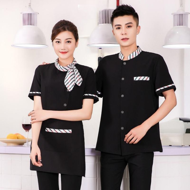 - Thoải Mái và Hiệu Suất: Chất liệu vải thoáng khí và khả năng co giãn nhẹ giúp nhân viên dễ dàng di chuyển, cúi người và thực hiện các thao tác phục vụ, từ đó cải thiện hiệu suất làm việc.