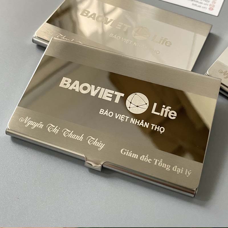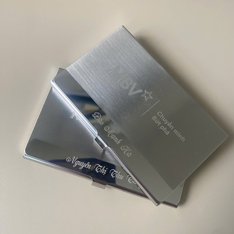 • Hộp namecard khắc logo công ty làm quà tặng cho ban lãnh đạo, quản lý cấp cao của công ty đối tác.