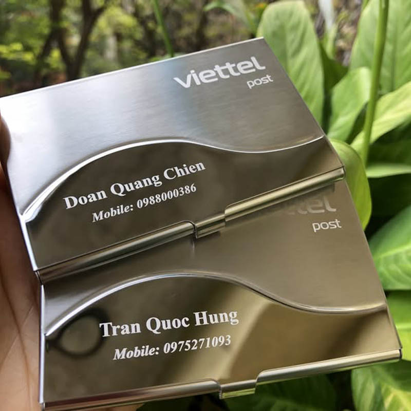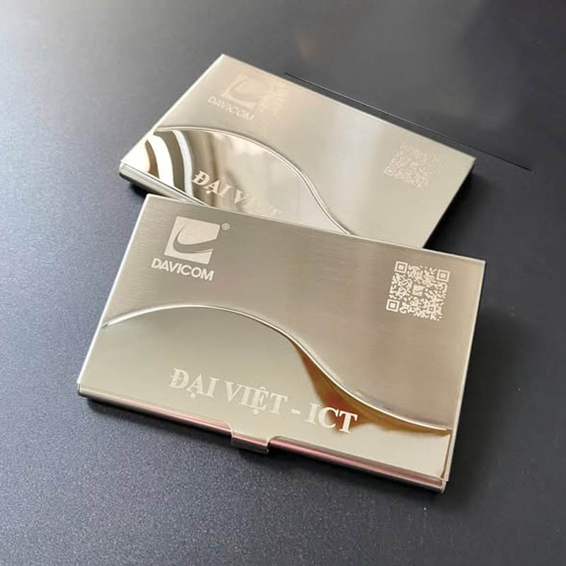 Giá trị cốt lõi và độc đáo của Hộp Namecard Kim Loại nằm ở khả năng khắc logo theo yêu cầu. Phương pháp khắc laser là lựa chọn hàng đầu và gần như duy nhất cho chất liệu kim loại: