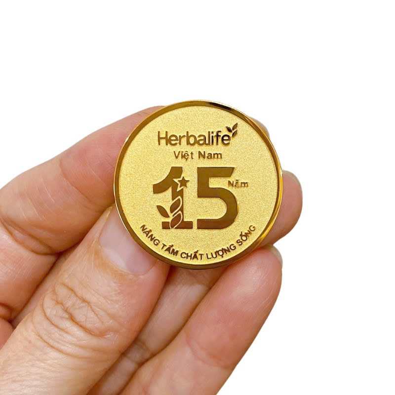 Sản phẩm huy hiệu cài áo lễ kỷ niệm cho khách mời này thường được chế tác từ kim loại quý như đồng thau hoặc hợp kim kẽm cao cấp, thông qua công nghệ đúc khuôn hoặc dập ép tinh xảo. Điểm nhấn của BTPPR08 là khả năng tái hiện chi tiết ngày tháng, năm kỷ niệm, logo sự kiện với hiệu ứng dập nổi/dập chìm sắc nét. Để tăng tính trang trọng, huy hiệu thường được mạ vàng 24K, mạ bạc hoặc mạ đồng giả cổ, kết hợp với các màu men cứng (Hard Enamel) để đảm bảo độ bền màu vĩnh cửu và bề mặt sáng bóng. Việc trao tặng huy hiệu cài áo lễ kỷ niệm BTPPR08 không chỉ là một hành động tri ân mà còn là chiến lược thông minh để biến khách mời thành đại sứ thương hiệu, giữ lại kỷ niệm đẹp và lan tỏa thông điệp về sự bền vững, phát triển của tổ chức. Đây là vật phẩm không thể thiếu để tạo nên sự khác biệt và đẳng cấp cho bất kỳ buổi lễ kỷ niệm nào.