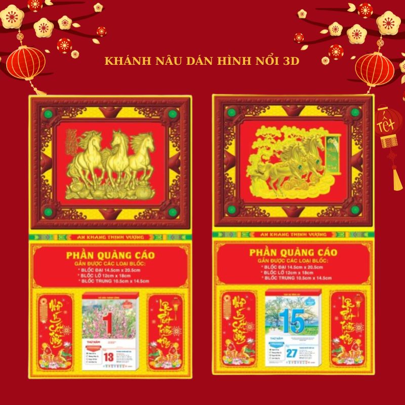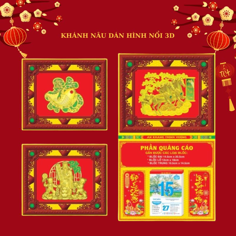 - Khánh Nâu và Hình Nổi 3D: Yếu tố quan trọng là Lịch Bloc Khánh Nâu In Logo, Bìa Lịch Giả Gỗ 3D và Quà Tặng Tết Trang Trọng. Thiết kế khánh nâu mang lại vẻ ngoài ấm cúng và cổ điển.