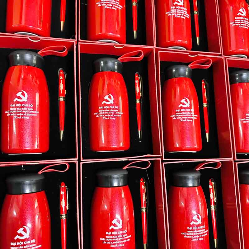 Công nghệ khắc laser được áp dụng cho cả bình và bút ký đảm bảo logo của doanh nghiệp không bao giờ bị phai mờ hay bong tróc. Đây là điểm mấu chốt khi lựa chọn set bình bút in theo yêu cầu – một món quà mà dấu ấn thương hiệu có thể tồn tại vĩnh viễn cùng sản phẩm.