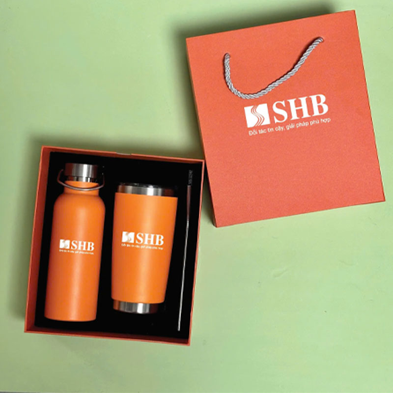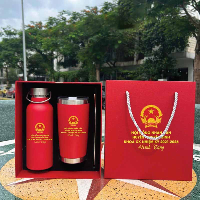 Bình và cốc giữ nhiệt là vật dụng cá nhân có tính ứng dụng cực kỳ cao, gắn liền với thói quen sử dụng đồ uống hàng ngày của người nhận. Việc logo được in khắc logo một cách tinh xảo trên cả hai vật phẩm đảm bảo hình ảnh thương hiệu của bạn được hiển thị liên tục, từ văn phòng, phòng họp đến khu vực giải trí. Tần suất tiếp xúc thương hiệu cao giúp hình ảnh doanh nghiệp lan tỏa một cách tự nhiên và bền bỉ, tối ưu hóa hiệu quả của ngân sách marketing.