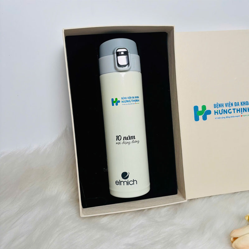 Set Bình Giữ Nhiệt Elmich Nắp Bật In Logo Quà Tặng Khách Hàng | SBGNPPR03