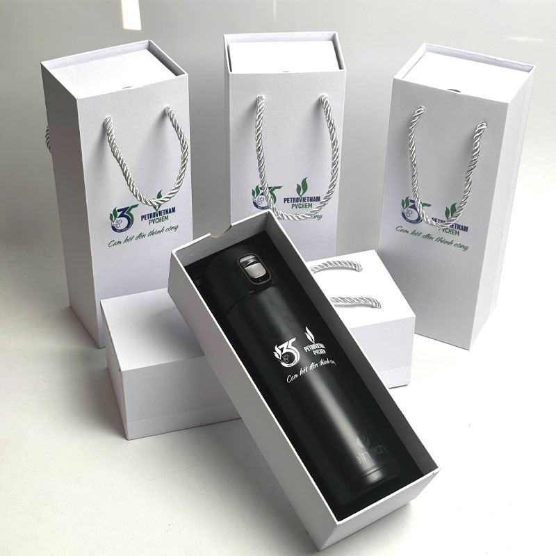 2. Công nghệ In logo/Khắc logo: Logo doanh nghiệp được in logo hoặc khắc laser tinh xảo lên thân bình, đảm bảo độ bền cao và tính thẩm mỹ chuyên nghiệp, giúp thương hiệu luôn đồng hành cùng người nhận.