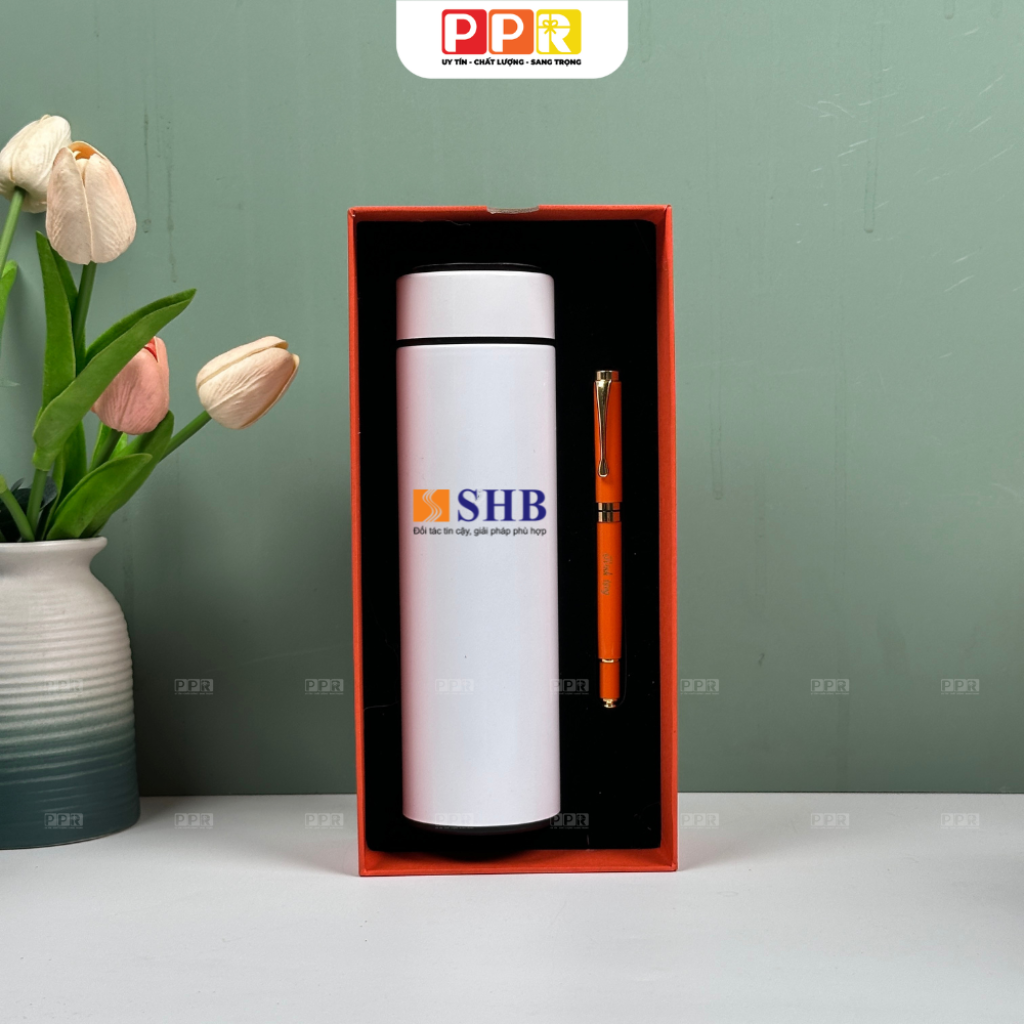 Set bình giữ nhiệt kèm bút ký in khắc logo PPR PPRBB01