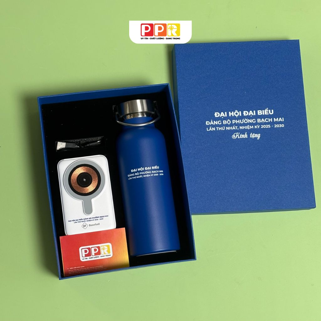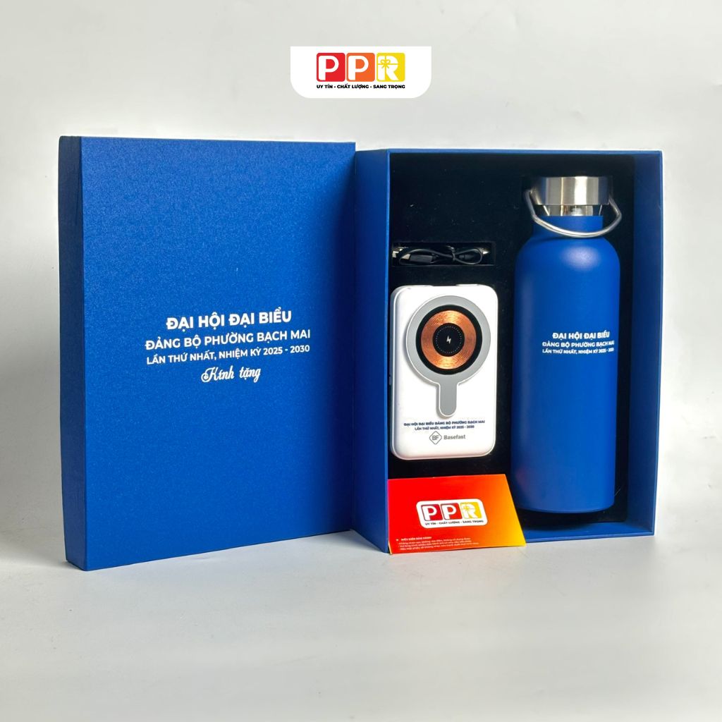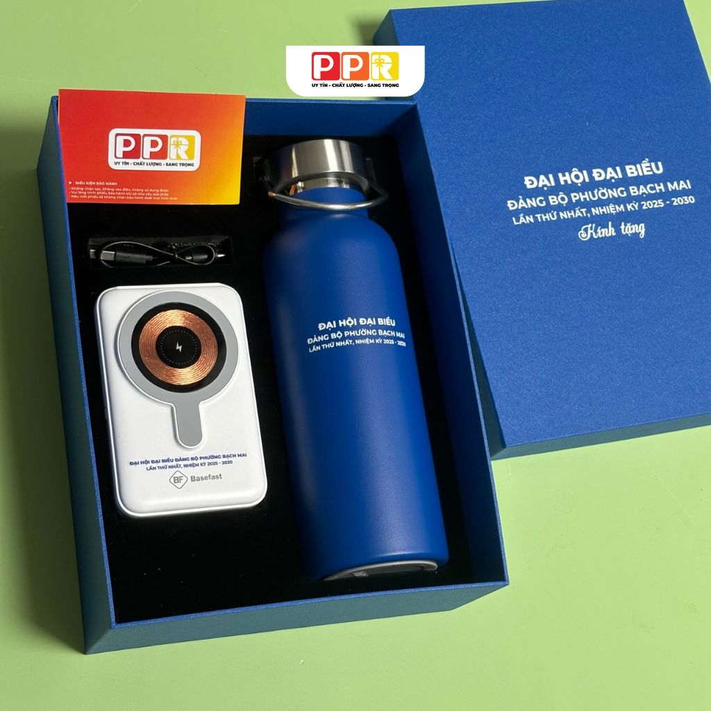 Đặt set bình giữ nhiệt kèm sạc dự phòng in logo tại PPR Gift
