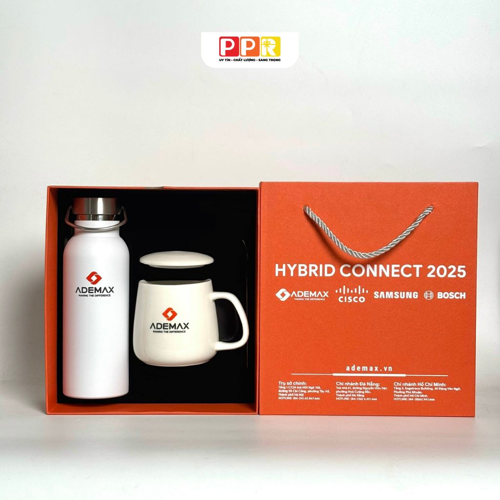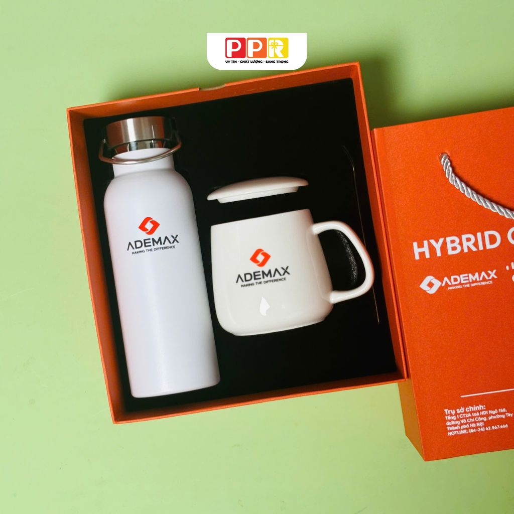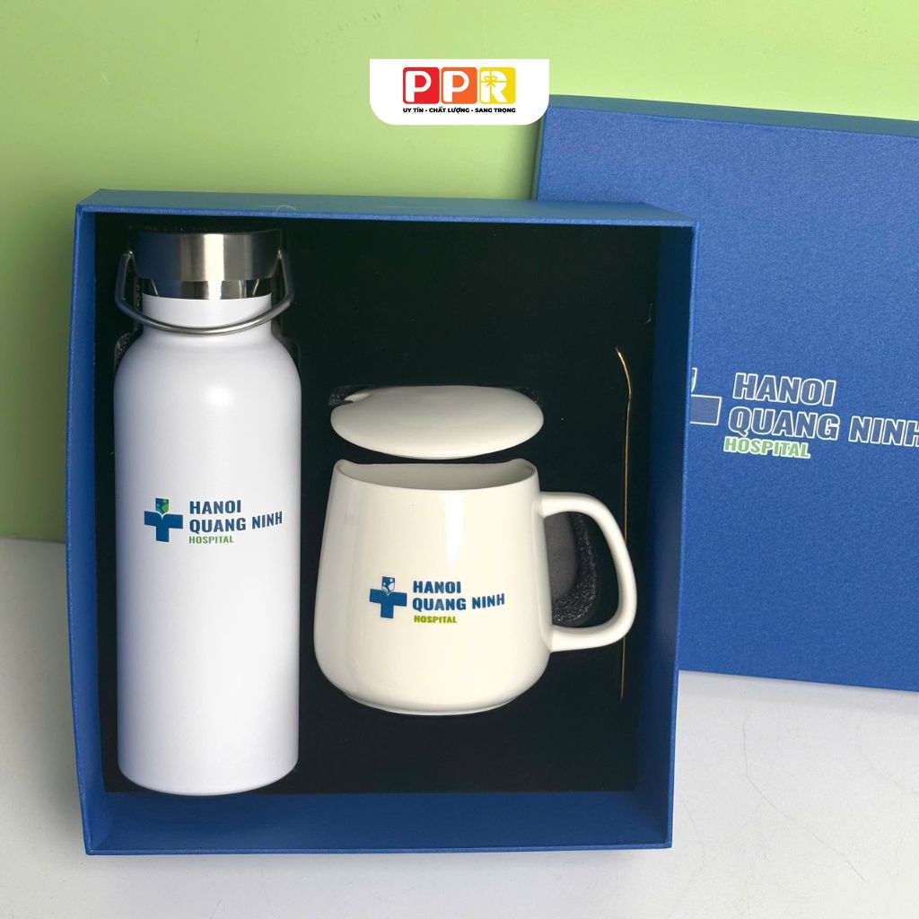 Set bình giữ nhiệt và cốc sứ in logo theo yêu cầu SBCSPPR01