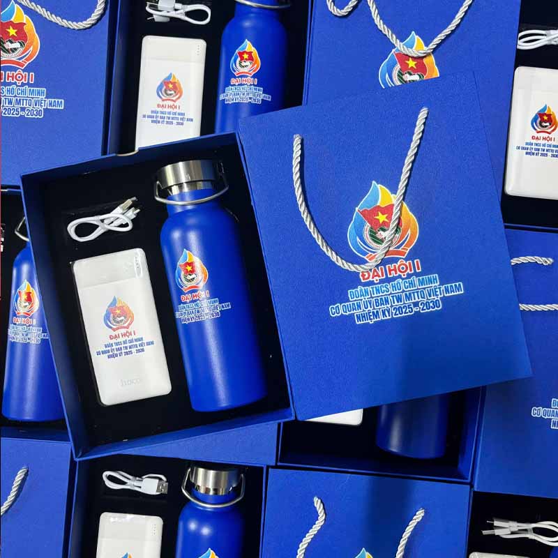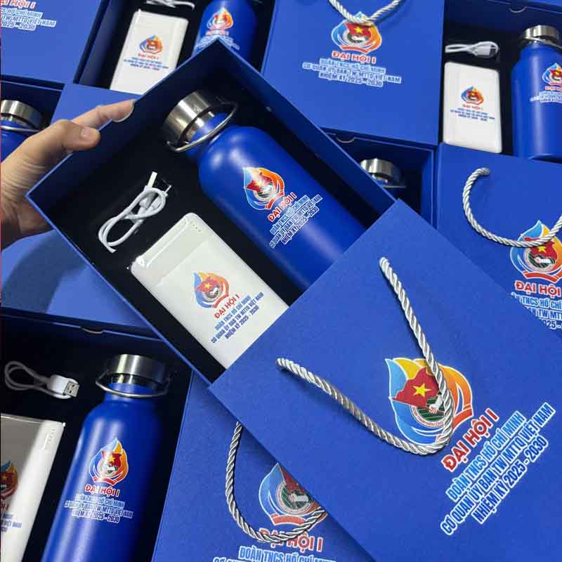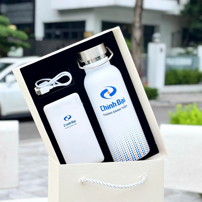 Sự kết hợp giữa bình giữ nhiệt (chăm sóc sức khỏe) và sạc dự phòng (hỗ trợ công việc) đáp ứng hai nhu cầu thiết yếu nhất của người dùng hiện đại. Bình giữ nhiệt đảm bảo người nhận luôn có đồ uống yêu thích ở nhiệt độ lý tưởng, còn sạc dự phòng giúp họ duy trì kết nối và công việc không bị gián đoạn. Sự đồng bộ tiện ích này tạo nên một set quà tặng in logo doanh nghiệp vô cùng hữu ích và ý nghĩa.