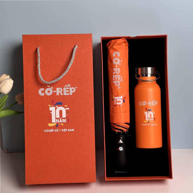 Cả ô gấp 3 và bình giữ nhiệt Inox 304 đều là vật dụng mà bất kỳ cá nhân nào cũng cần. Ô giúp bảo vệ sức khỏe và trang phục khỏi thời tiết, trong khi bình giữ nhiệt khuyến khích thói quen uống đủ nước và giảm thiểu rác thải nhựa. Món quà thực tế, có tuổi thọ sử dụng lâu dài này giúp hình ảnh doanh nghiệp gắn liền với sự hữu ích và bền vững.