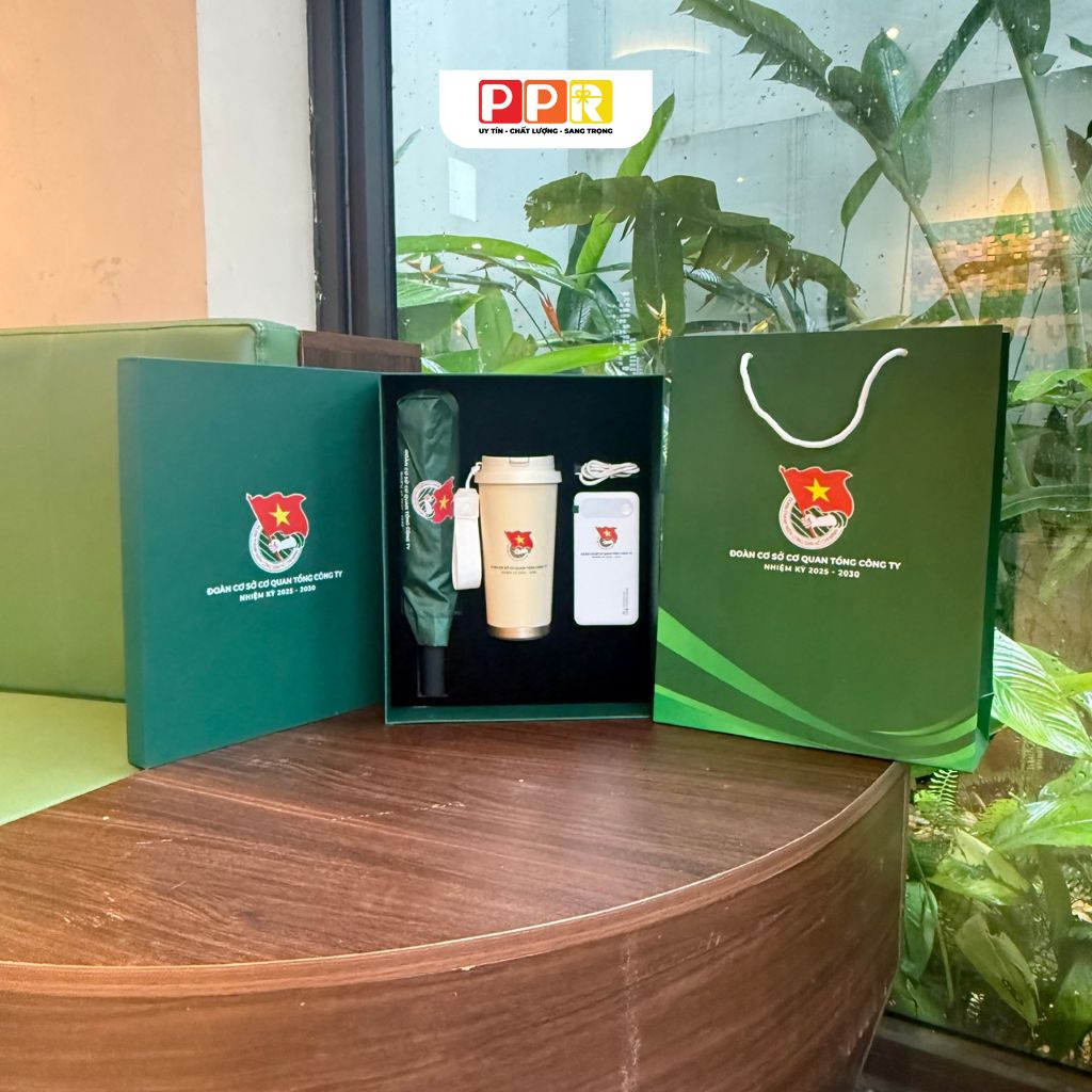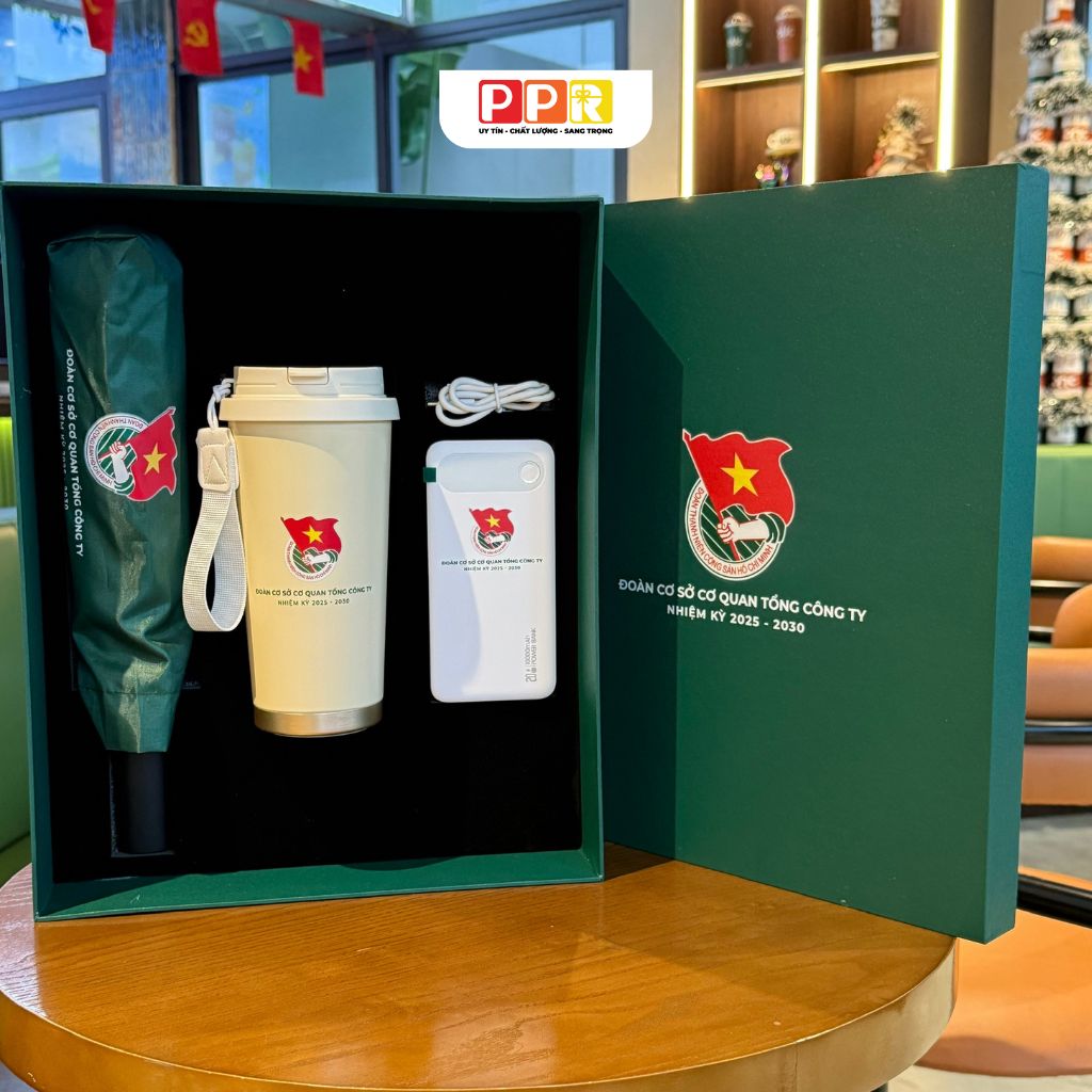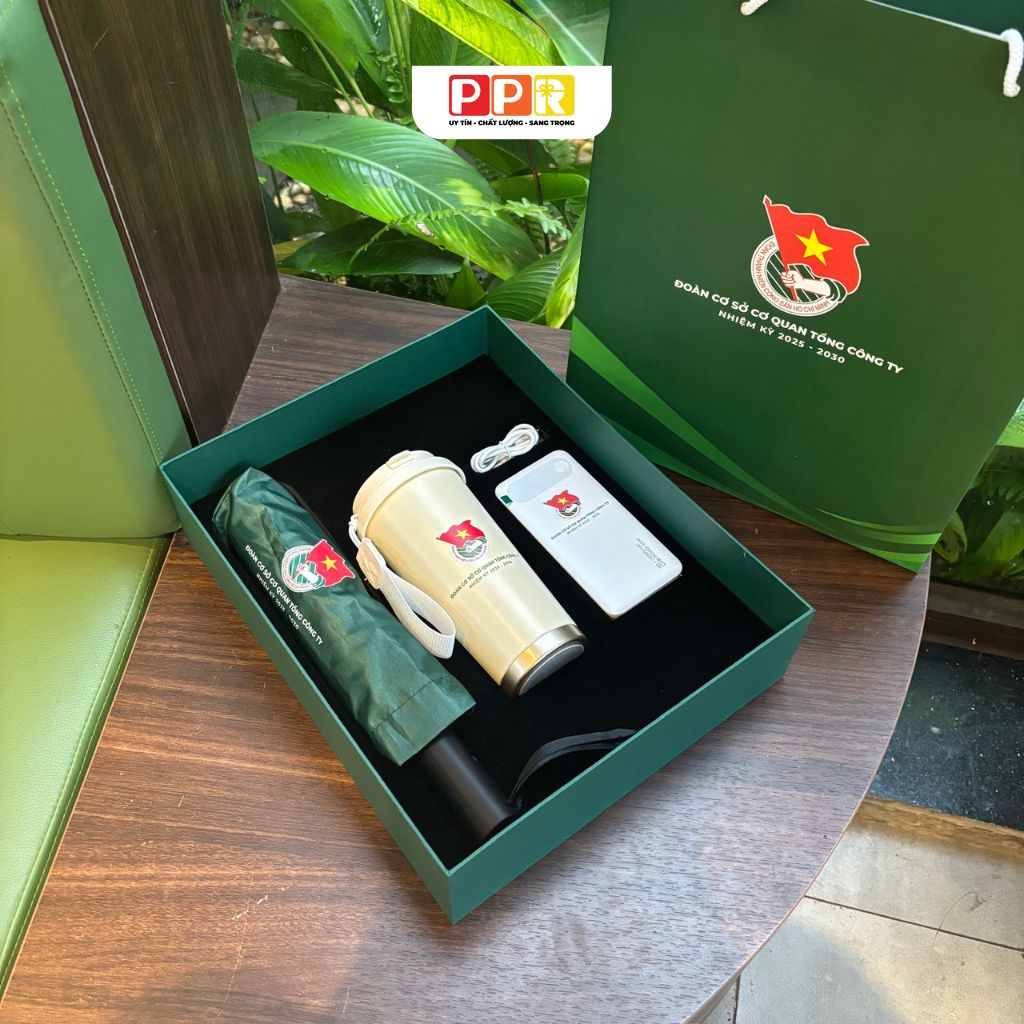 PPR Gift cung cấp set ô, bình giữ nhiệt và sạc dự phòng in logo với:
