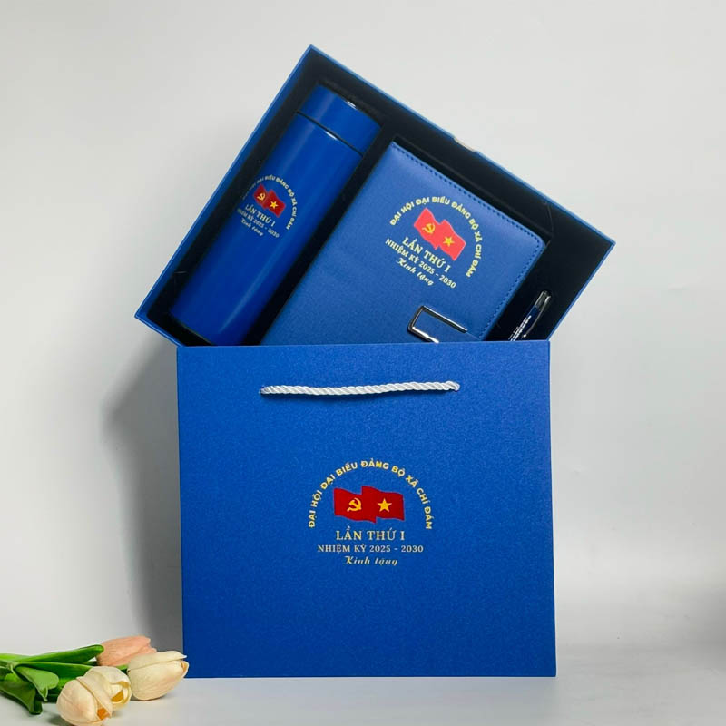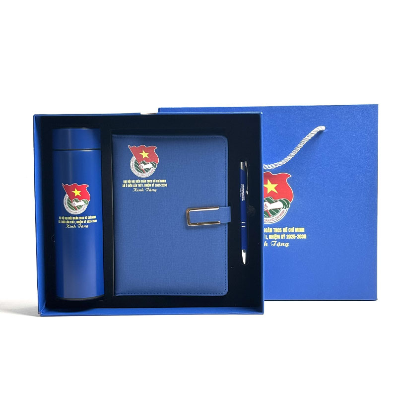 | Thành phần | Bình giữ nhiệt Inox 304, Sổ bìa da, Bút ký nhôm, Hộp xi định hình. |