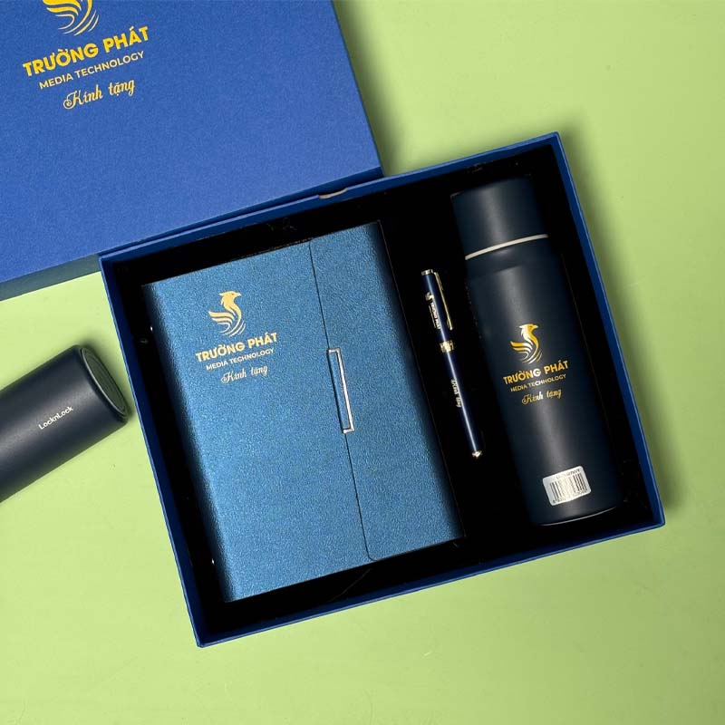 Bộ set sổ bình bút in theo yêu cầu này cho phép cá nhân hóa mức độ cao: logo được in khắc logo trên cả ba sản phẩm. Đặc biệt, công nghệ khắc laser trên bình và bút đảm bảo logo không bị phai mờ, giữ vững hình ảnh thương hiệu vĩnh cửu. Cá nhân hóa tạo nên sự độc quyền, khiến món quà trở nên có giá trị tinh thần hơn rất nhiều.