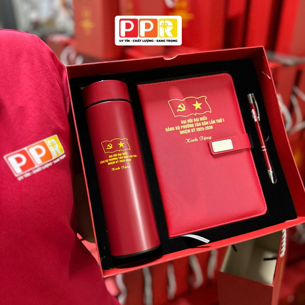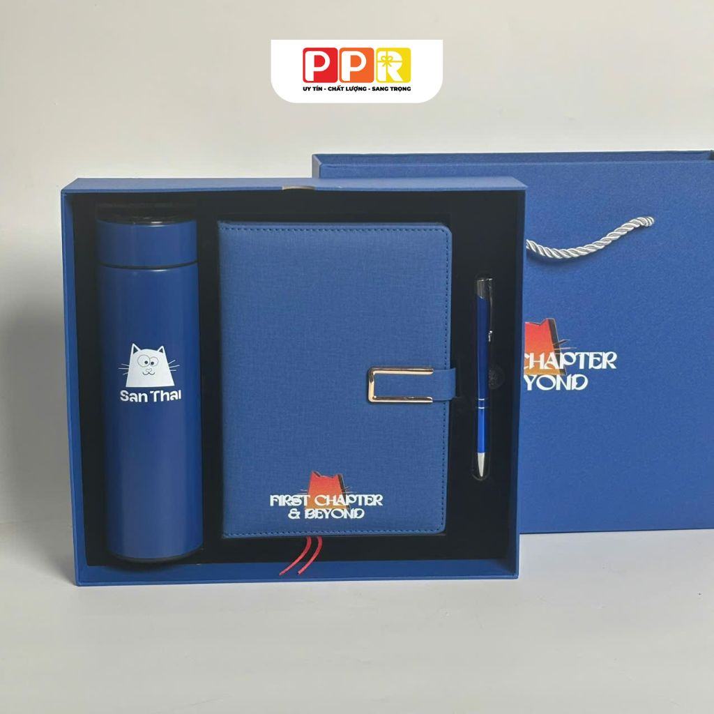 • Bộ quà tặng đồng bộ: Kết hợp sổ – bút – bình giữ nhiệt mang lại sự chỉn chu và chuyên nghiệp.