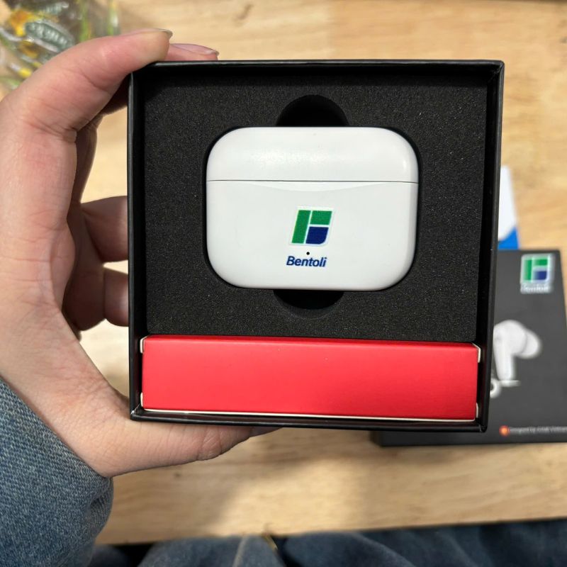 Tai Nghe Không Dây TWS In Logo TNPPR01 là sản phẩm công nghệ cao cấp và xu hướng, lý tưởng cho người dùng yêu thích sự gọn gàng và chất lượng âm thanh tốt. Sản phẩm nổi bật với hộp sạc nhỏ gọn (thường mô phỏng kiểu dáng AirPods Pro), kết nối Bluetooth ổn định và chất lượng âm thanh stereo rõ ràng. Hộp sạc có bề mặt trơn nhẵn, rất phù hợp để in logo doanh nghiệp (như logo Bentoli trong ảnh) một cách tinh tế và sắc nét. Tai Nghe Không Dây TWS In Logo TNPPR01 là lựa chọn tuyệt vời làm quà tặng Khách hàng VIP, quà tặng nhân viên hoặc vật phẩm công nghệ thể hiện sự hiện đại và đẳng cấp của thương hiệu.