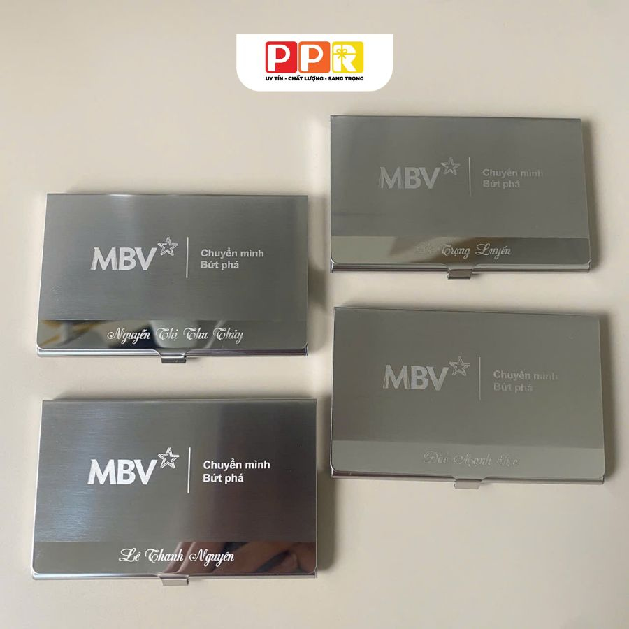 Ví namecard kim loại khắc logo của PPR thích hợp làm quà tặng doanh nghiệp, quà tri ân khách hàng, quà tặng hội thảo – sự kiện, giúp doanh nghiệp vừa quảng bá thương hiệu vừa thể hiện sự chuyên nghiệp trong mắt đối tác.